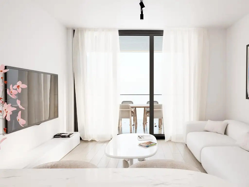 Ambiente amplio y luminoso, con cocina integrada y baño completo. El gran balcón aporta luz, ventilación y un espacio ideal para armar un sector de relax o comedor exterior.
