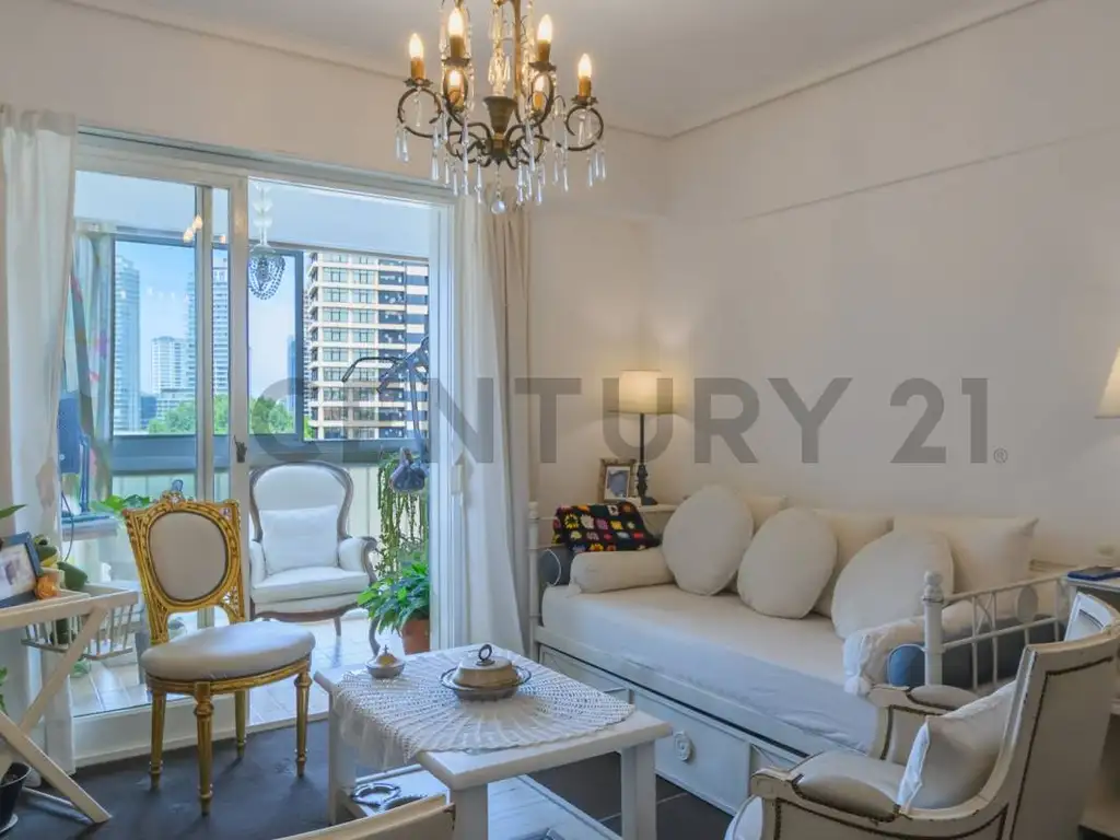 El living comedor, amplio y muy luminoso, cuenta con pisos de parquet y un gran ventanal con salida a un balcón cerrado, actualmente integrado al ambiente y utilizado como espacio de trabajo o área de descanso, con vista abierta hacia la Avenida Paseo Colón. Un ambiente cómodo y versátil, ideal para reuniones familiares o sociales.