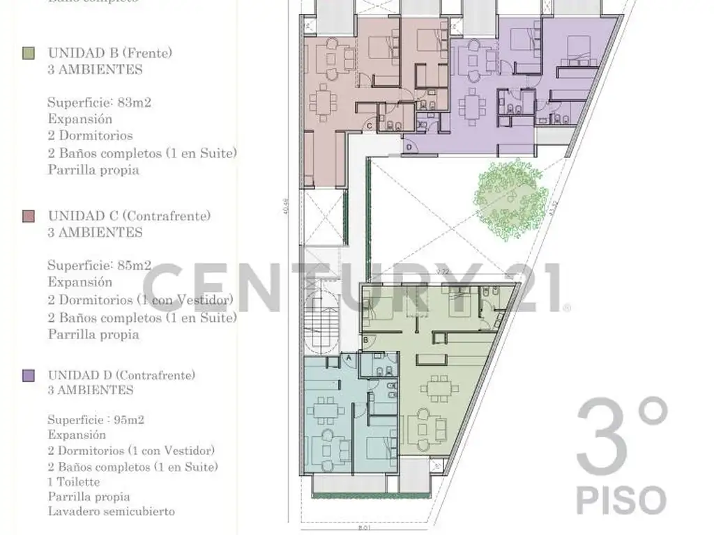 Unidades de 3 ambientes con 2 baños, vestido, parrilla propia, toilette.