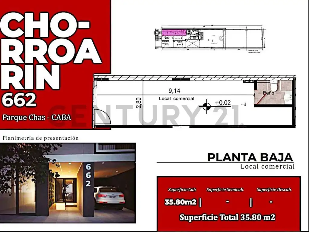 VENTA LOCAL 35,8 m² A ESTRENAR EN PARQUE CHAS - VILLA URQUIZA MUY AMPLIA VEREDA