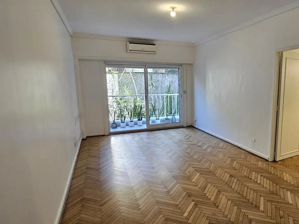 Los pisos de parquet lucen impecables, gracias a un reciente pulido e hidrolaqueado, destacando la calidez y el refinamiento del espacio. El departamento cuenta con una distribución muy funcional de doble circulación. Incluye tres dormitorios, dos de ellos orientados al contrafrente y el principal con aire acondicionado y placard empotrado de piso a techo, ofreciendo un excelente espacio de guardado.