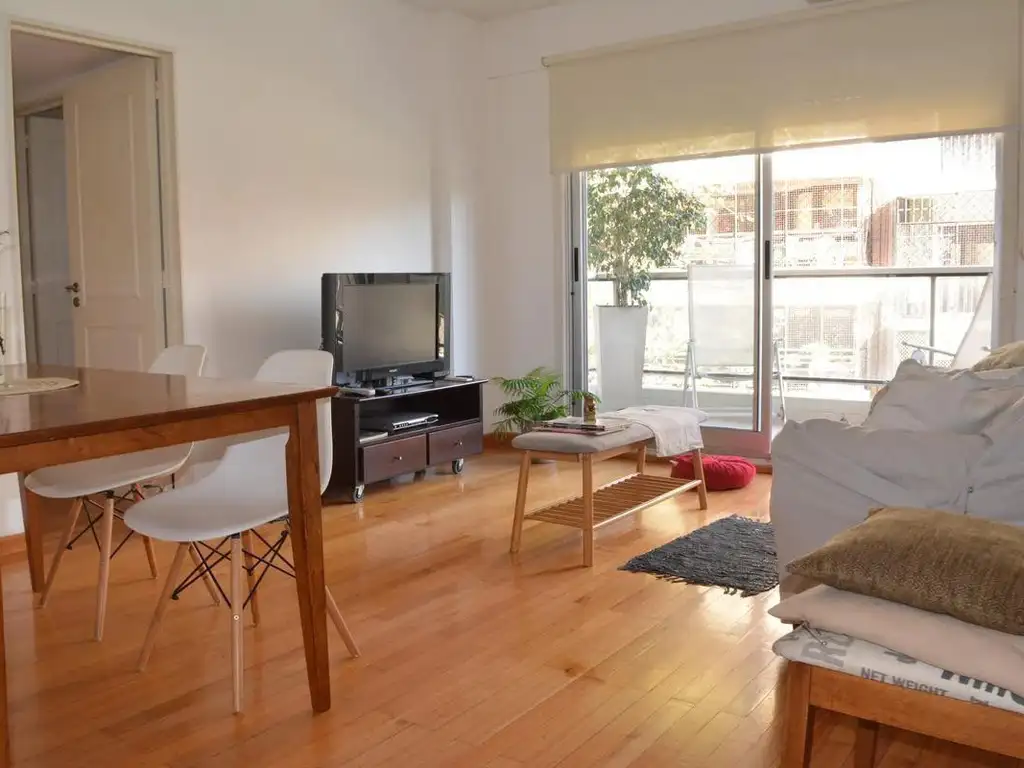 La unidad consiste en un amplio living comedor con salida a balcón que cuenta con protección para niños y está totalmente equipado con mesa y sillas, sofá, tv pantalla plana y aire acondicionado. La cocina es independiente y cuenta con heladera con freezer, horno a gas con hornallas, microondas, vajilla y todo lo necesario para cocinar. Además posee lavarropas incorporado.