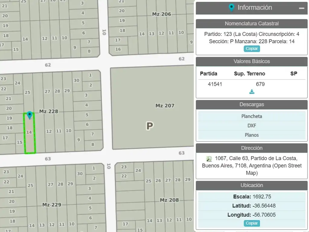 Partido: 123 (La Costa) Circunscripción: 4 Sección: P Manzana: 228 Parcela: 14, partida 41541.-