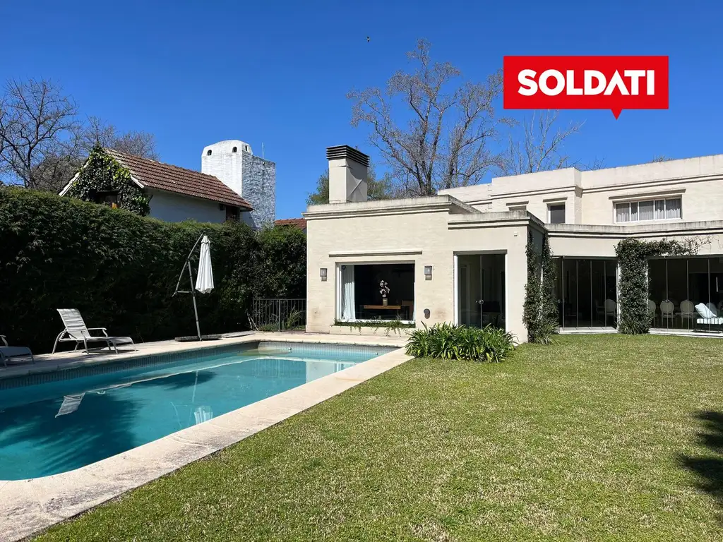 Hall de ingreso, comedor formal con living con hogar en desnivel, toilette. Suite de huéspedes y playroom tv. Cocina con isla, área de servicios completa e importante galería cerrada con aire frio/ calor. Quincho con parrilla y horno empotrado. Jardin con vista abierta al golf, con paisajismo hecho recientemente y pileta.