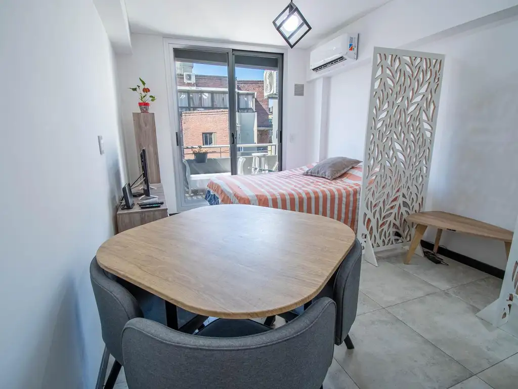 Ingreso a ambiente único, cocina semi-integrada. Pisos de porcelanato. Barra desayunadora. Alasenas y bajo mesada completas. Baño completo con bañera. Ventana en el mismo. Conexión para lavarropas sectorizado. Ventanal con DVH (Doble Vidrio Hermético). Aberturas de aluminio. Cortinas black out externas. Salida al balcón al frente Norte.