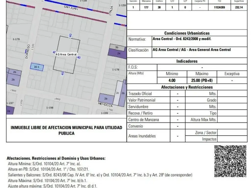 Certificado Urbanístico Vigente: PB+8 pisos (25mts)