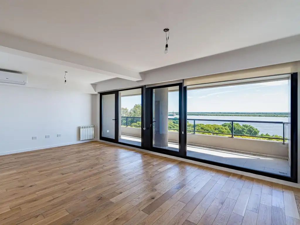 Ingreso a amplio Living-Comedor. Cocina completa, con muebles de alacena y bajo mesada, horno visor con anafe diferencial marca Longvie, bacha de acero inoxidable. Sector con espacio para heladera doble, tmb para lavavajillas. Portero con visor. Balcón Terraza al frente Noreste con vista franca al río y a las islas. 2 dormitorios, uno de ellos en suite con Vestidor con salida tambíen al balcón. 2 Baños completos (uno con ducha y el otro con bañera). Aberturas en aluminio con DVH (Doble Vidrio Hermético). Caldera dual para agua caliente y calefacción por Radiadores. 3 Aires Acondicionados frío/calor ya instalados. Lavadero sectorizado y balcón de servicio al contra-frente. Edificación de jerarquía con excelentes lineamientos arquitectónicos y riguroso control de obra, con un post-venta ejemplar. Ingreso con control de acceso y cerradura magnética, monta coches para las cocheras en 3 niveles (acceso automatizado). 2 ascensores (uno muy amplio para mudanzas).