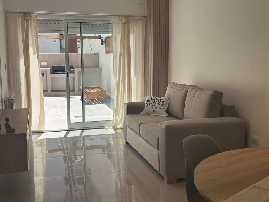 La unidad cuenta con luminoso living comedor con salido a grande patio con parrilla.