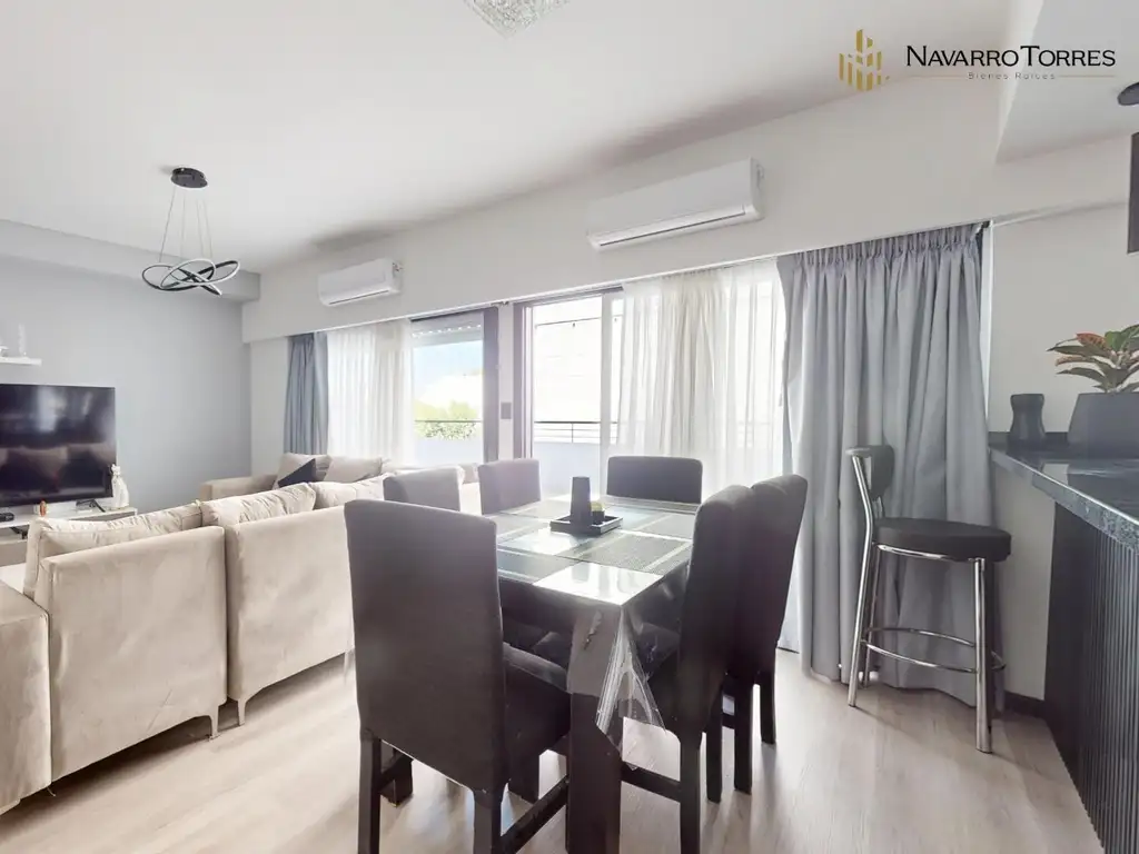 Amplio living comedor con salida a balcón terraza, ideal para disfrutar del aire libre.