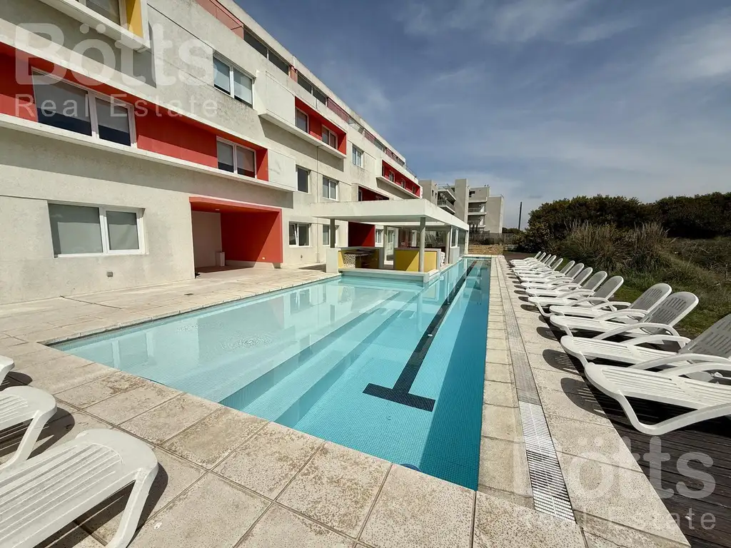 Consta de 2 ambientes, living comedor,cocina completa con desayunador, dormitorio de amplias dimensiones en la fachada posterior, baño completo y terraza propia con inmejorable vista a la playa , además posee doble módulo vidriado al mar.