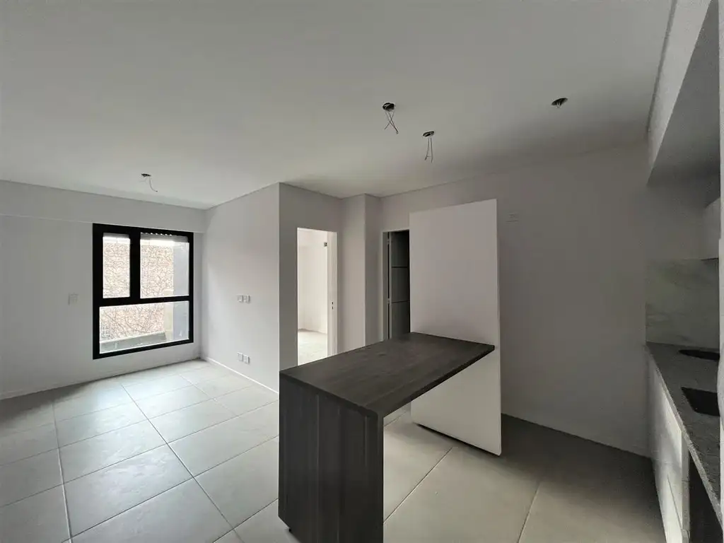 La unidad cuenta con cocina integrada al comedor con una barra desayunadora divisoria con ventanales, un dormitorio con placard e interiores y salida a balcón. Baño completo con bañera. Pisos porcelanato de primera calidad y zócalos de madera. Yesería en todos los ambientes. Muebles bajo mesada y alacenas de última generación, mesada de granito, bacha de Aceros Johnson y grifería monocomando Piazza. Pre instalación de aire.