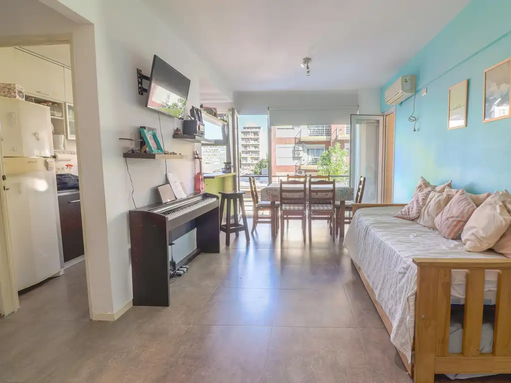 Esta ubicado en 8 piso al frente. El departamento cuenta con un amplio living-comedor con pisos de porcelanato, cocina separada con alacena, bajo mesada y barra desayunadora, baño completo con mampara de vidrio, lavadero independiente, dormitorio con placard y piso flotante. Balcón con piso de madrera y acceso desde el living-comedor y dormitorio.