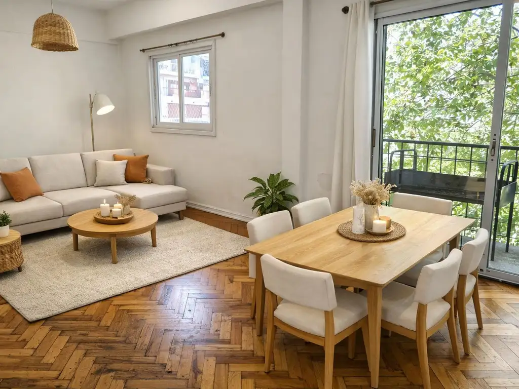 Amplio living comedor en "L" - balcón a la calle -