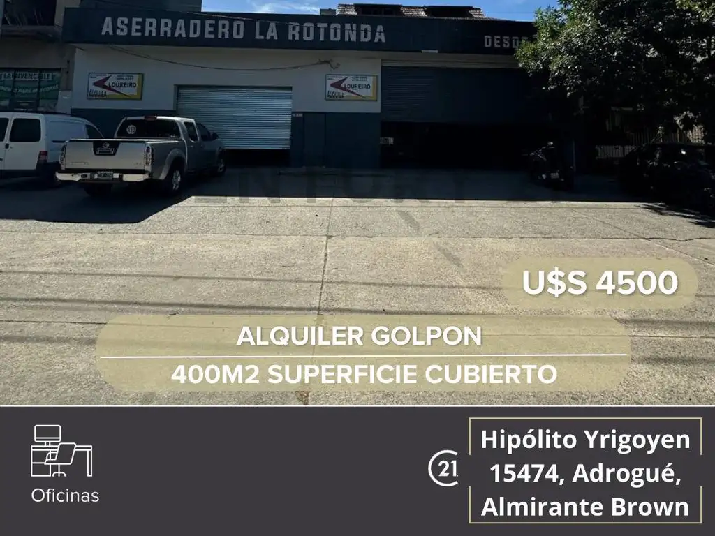 Galpón de 400 m² ubicado sobre Av. Hipólito Yrigoyen 15.474, entre Wilson e Italia, una de las arterias comerciales e industriales más importantes de la zona sur del Gran Buenos Aires.