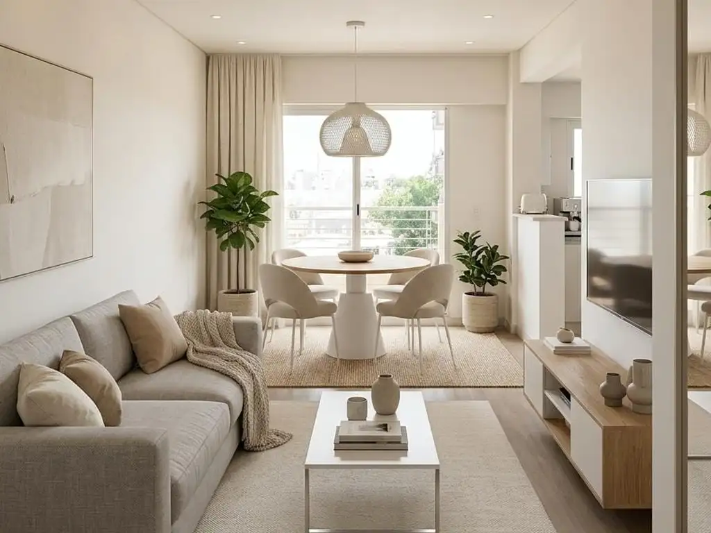CONTRA FRENTE LIVING COMEDOR, COCINA INTEGRADA AMOBLADA, PLACAR DE CORTESIA EN EL HALL DE RECEPCION DORMITORIO CON PLACARD, BAÑO COMPLETO, BALCON CON LAVADERO