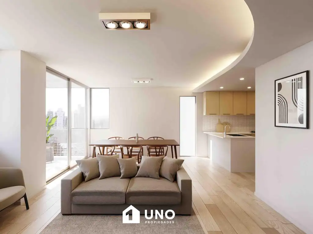 La unidad se desarrolla a partir de un estar/comedor con salida directa a un balcón terraza, que funciona como expansión principal del departamento. La cocina es semiseparada, mediante barra desayunadora.