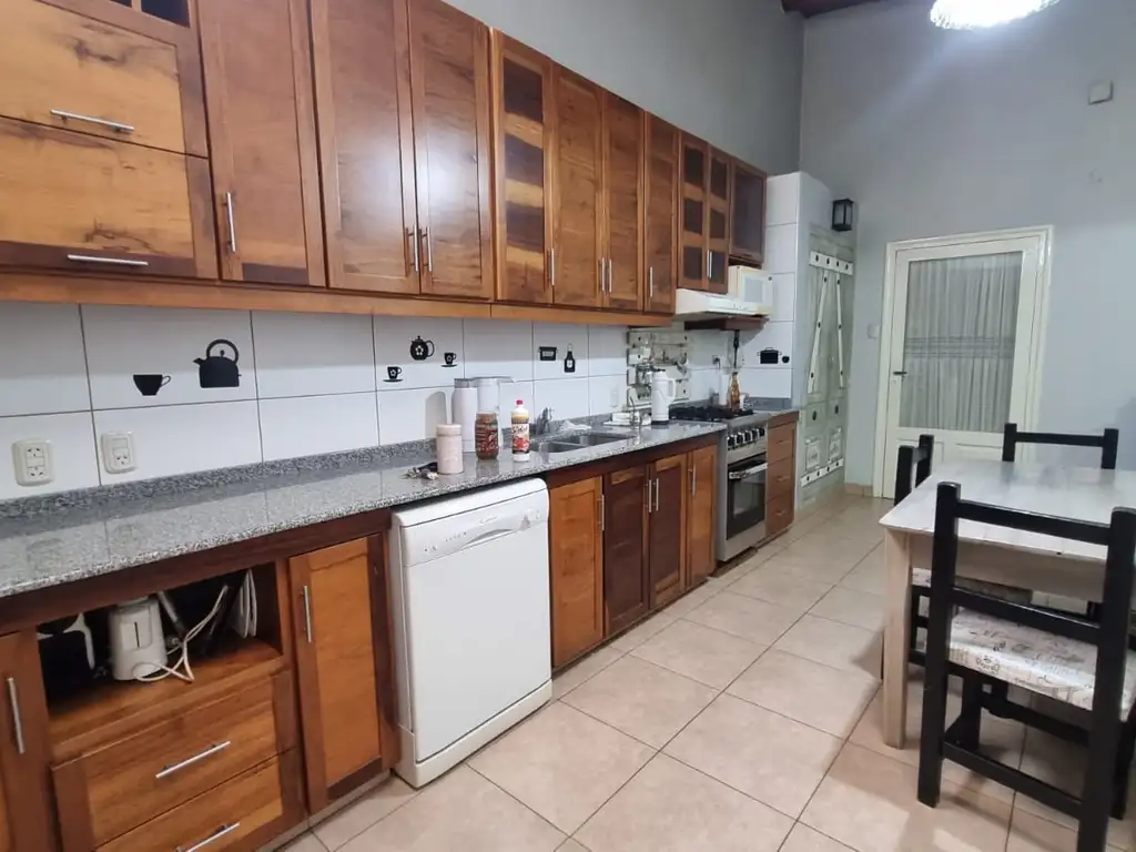 Cuenta con 2 habitaciones con placares, 1 baño, cocina comedor, living con piso parqué, cochera cubierta para 2 vehículos, galería cubierta, lavandería, despensa, patio con churrasquera.