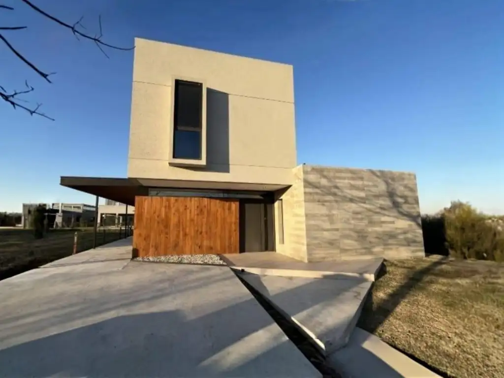 Propiedad a estrenar desarrollada en dos plantas, ubicada en el barrio Araucarias, dentro de Puertos del Lago, sobre Av. de los Lagos, Escobar. Orientación noroeste.
