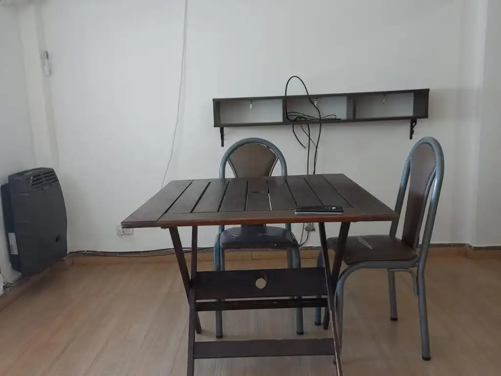 La unidad cuenta con cocina integrada a ambiente único, posee alacenas y bajomesada, calefón y calefactor a gas natural. Baño completo. Habitación separada con placard amplio. Es muy luminoso, ventilado y silencioso ya que está al contrafrente.