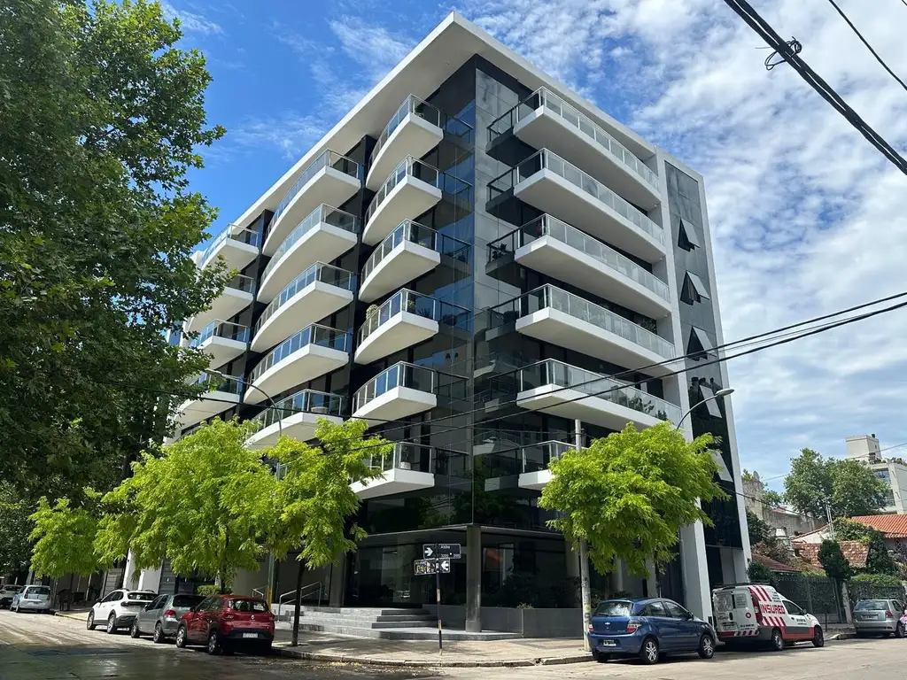 El edificio se distingue por su diseño arquitectónico de vanguardia, con balcones curvos que simulan olas y una fachada de vidrios negros, logrando una estética moderna, sofisticada y única. Entre sus amenities ofrece gimnasio y pileta, reforzando el carácter premium del conjunto.