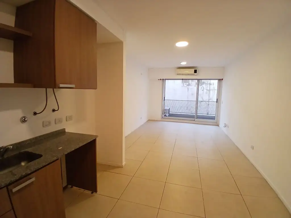 El departamento ofrece un ambiente amplio y funcional, con muy buena entrada de luz natural. La salida al balcón aporta aireación, amplitud visual y un espacio ideal para armar un pequeño sector de relax. La cocina se integra de manera práctica al ambiente, con equipamiento moderno y líneas limpias. Baño completo con terminaciones actuales.