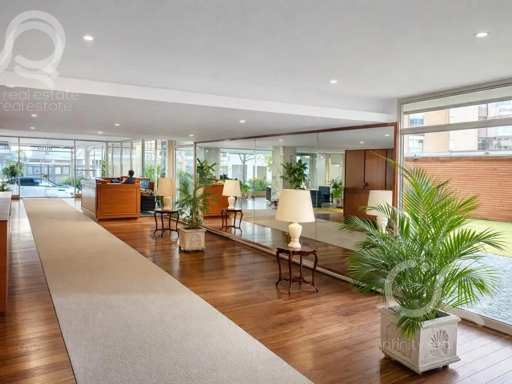 Orientación Norte (noreste en la cocina, noroeste en el living), pallier semiprivado, 5 ambientes, amplio living/comedor con acceso a gran balcón terraza, cortinas eléctricas, cuatro dormitorios, toilette de recepción.