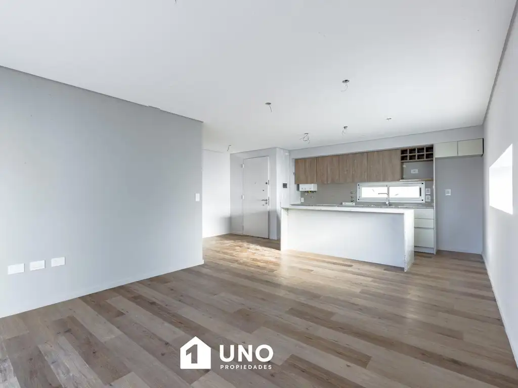 La unidad se desarrolla a partir de un amplio estar/comedor, integrado a la cocina con isla central y barra desayunadora, generando un ambiente cómodo y funcional. Cuenta además con lavadero independiente. Desde el área social se accede a un patio de uso exclusivo con parrillero, pérgola y sector de césped, que aporta ventilación y luz natural a la unidad.