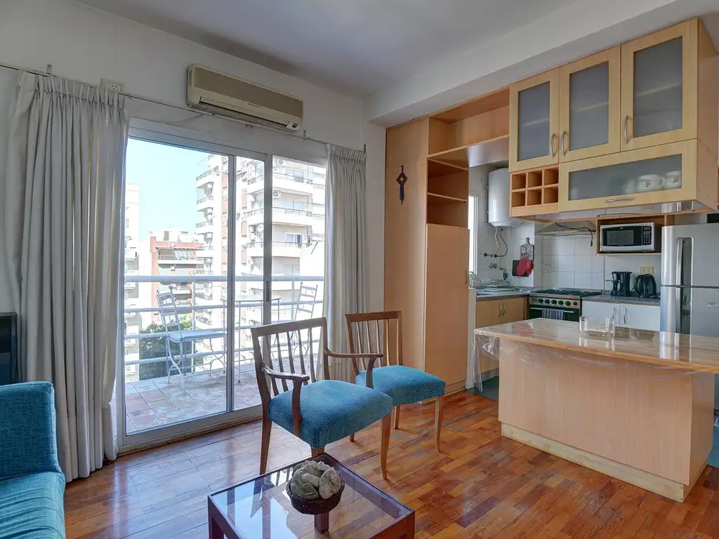 Máximo Confort: Dormitorio luminoso, baño completo en impecable estado y ventilación natural .