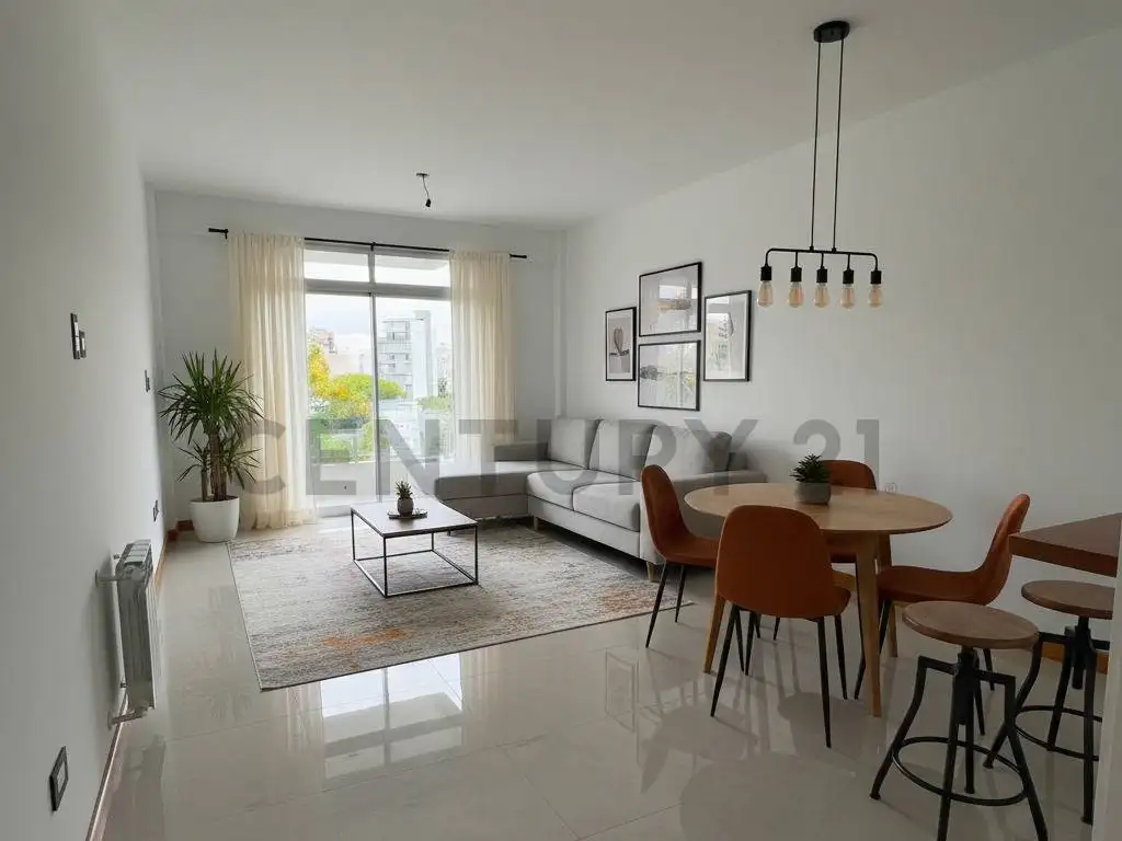 Al ingresar, nos encontramos con una cocina semi integrada, equipada y separada mediante barra desayunadora, que se conecta de manera funcional con el living comedor, un ambiente amplio y luminoso con salida al balcón al frente, ideal para disfrutar del aire libre.
