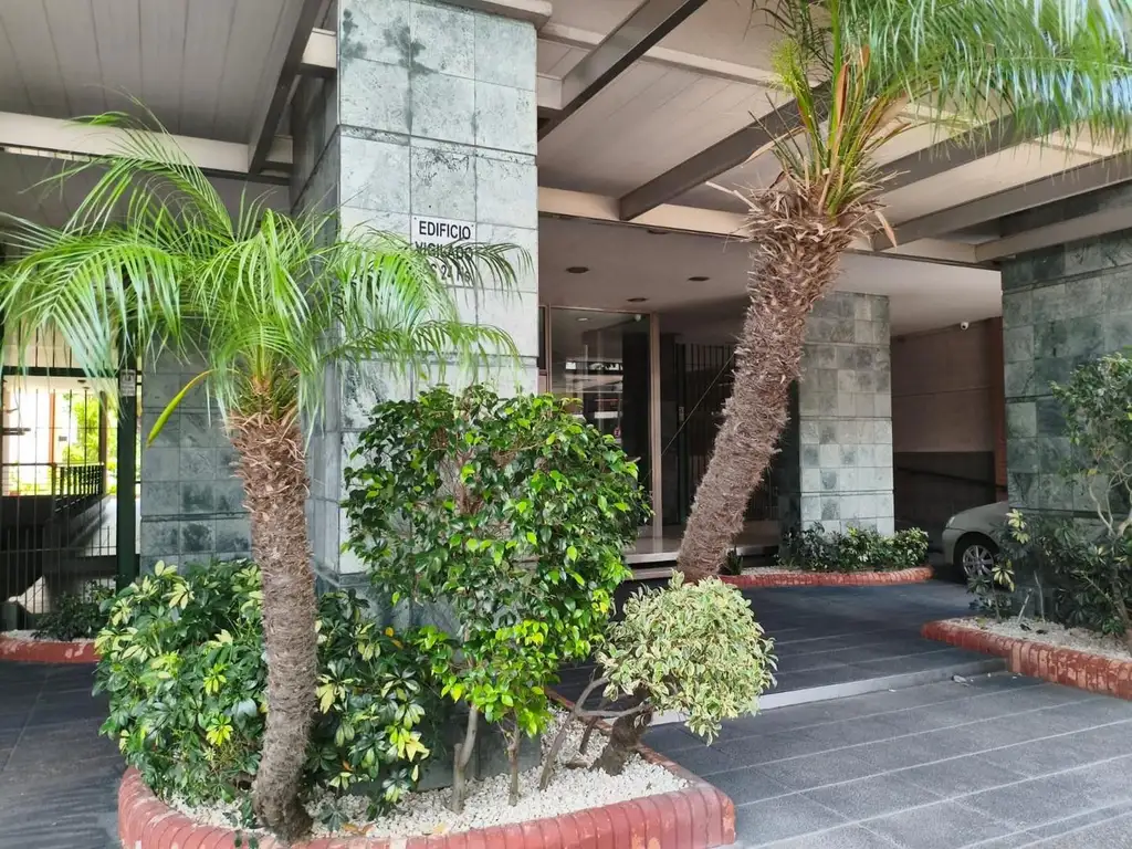 Se trata de un departamento ubicado en el piso 12 al frente, en un edificio de 12 pisos, con cinco departamentos por piso y dos ascensores. Edificio de categoría, cuenta con Encargado permanente, servicio de seguridad nocturna, gran parque trasero con mesas, bancos y parrillas de uso común.
