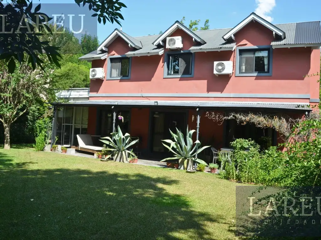 Galería cubierta, parrilla, amplio jardín y pérgola para un auto.