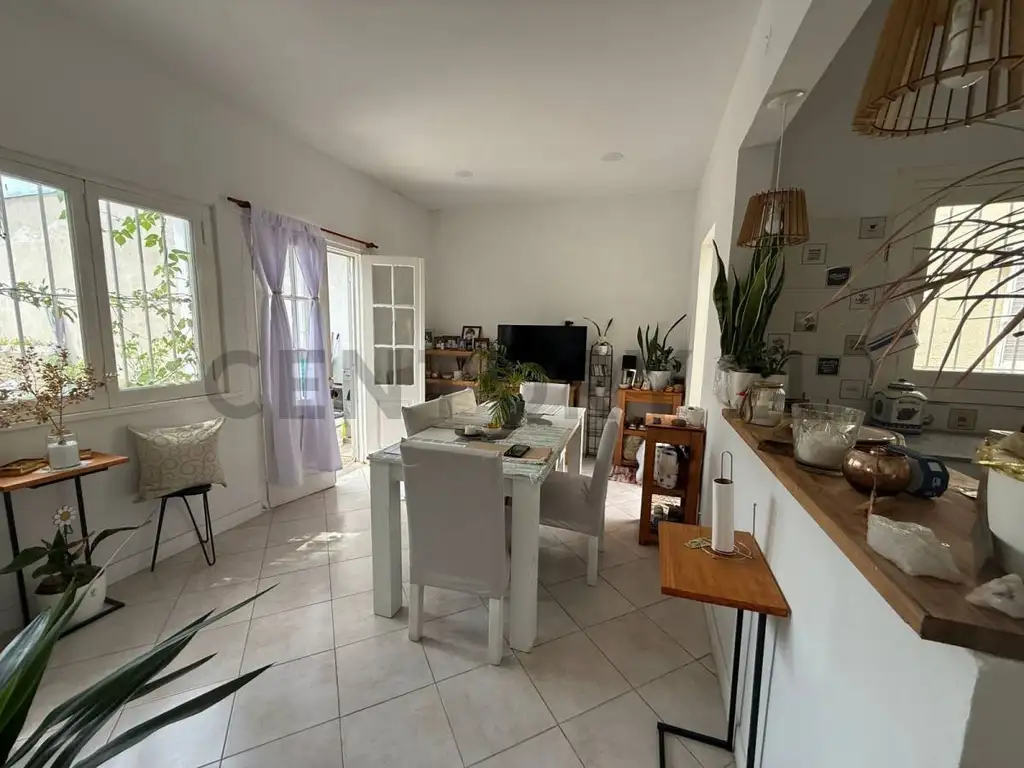 Distribución funcional y cómoda: cocina–comedor amplia con barra desayunadora, distribuidor, dos dormitorios, patio interno y fondo verde amplio con posibilidad de generar un baño adicional al fondo de la construcción.