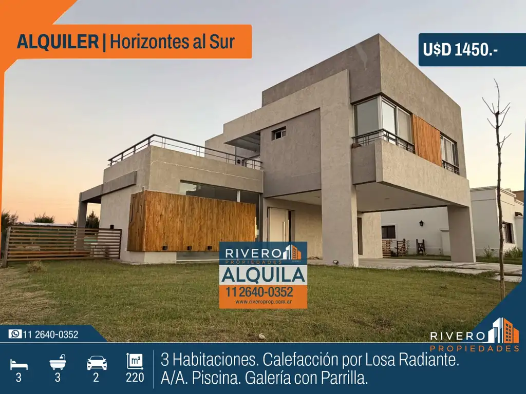 Alquiler Casa - 3 habitaciones en Suite - Piscina - Horizontes al Sur