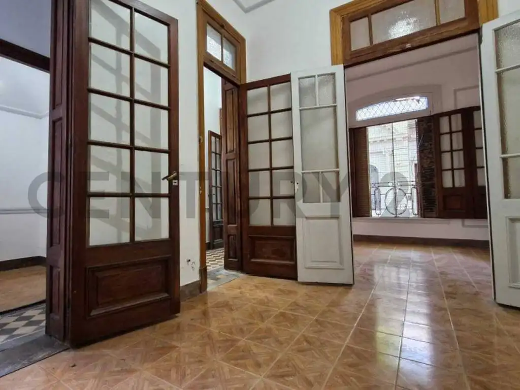 Dispone de cuatro ambientes principales, todos de muy buenas dimensiones, con techos altos, pisos de época y carpinterías originales de madera que preservan el carácter arquitectónico del inmueble. Los ambientes se perciben amplios, bien proporcionados y adaptables a distintos usos: dormitorios, living, escritorio o espacios de trabajo.