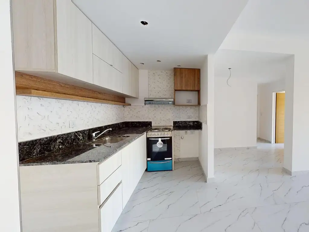 Impecable propiedad a estrenar con terminaciones de alta calidad. El departamento cuenta con artefactos y sanitarios de marca Ferrum y FV, mesadas en granito y pisos de porcelanato en todos los ambientes. La cocina es eléctrica y el agua caliente es central a gas.