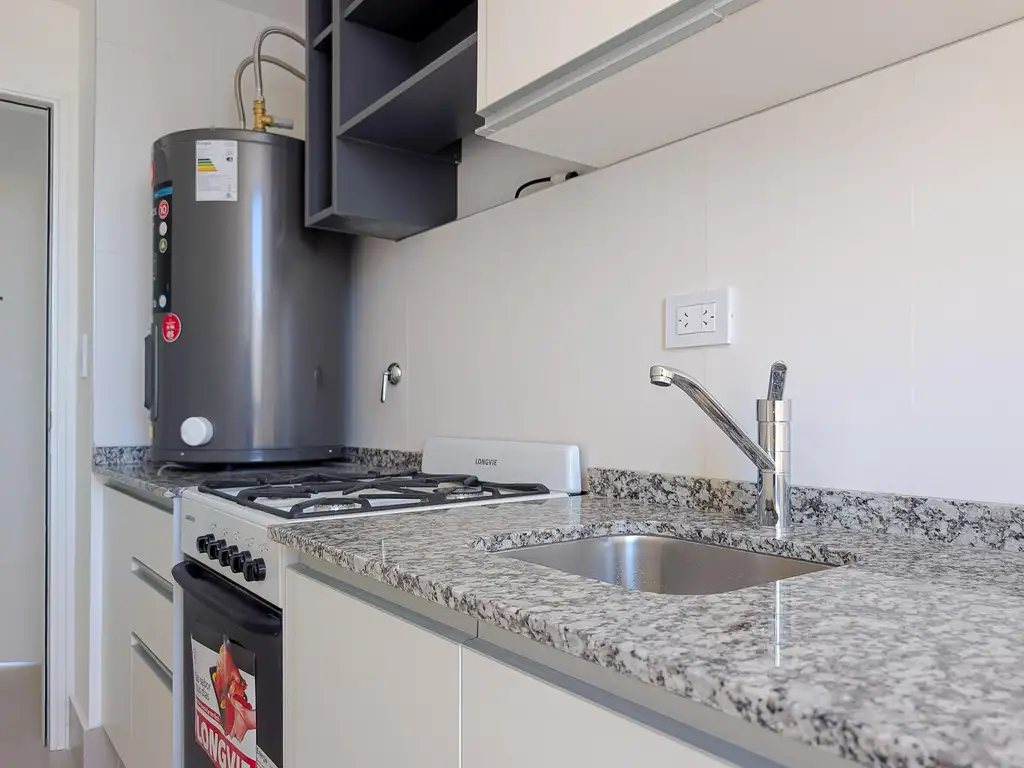 La unidad cuenta con estarcomedor, cocina independiente, dos dormitorios, baño principal y toilette, y balcón al frente. Se destaca por su funcionalidad y confort, ofreciendo preinstalación para aire acondicionado en todos los ambientes y estufa a gas de tiro balanceado en el living, ideal para climatizar el espacio principal.