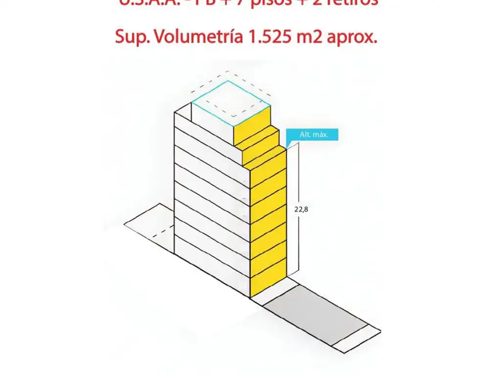 Altura Máxima: 22.8 m - (PB + 7 PISOS + 2 RETIROS)