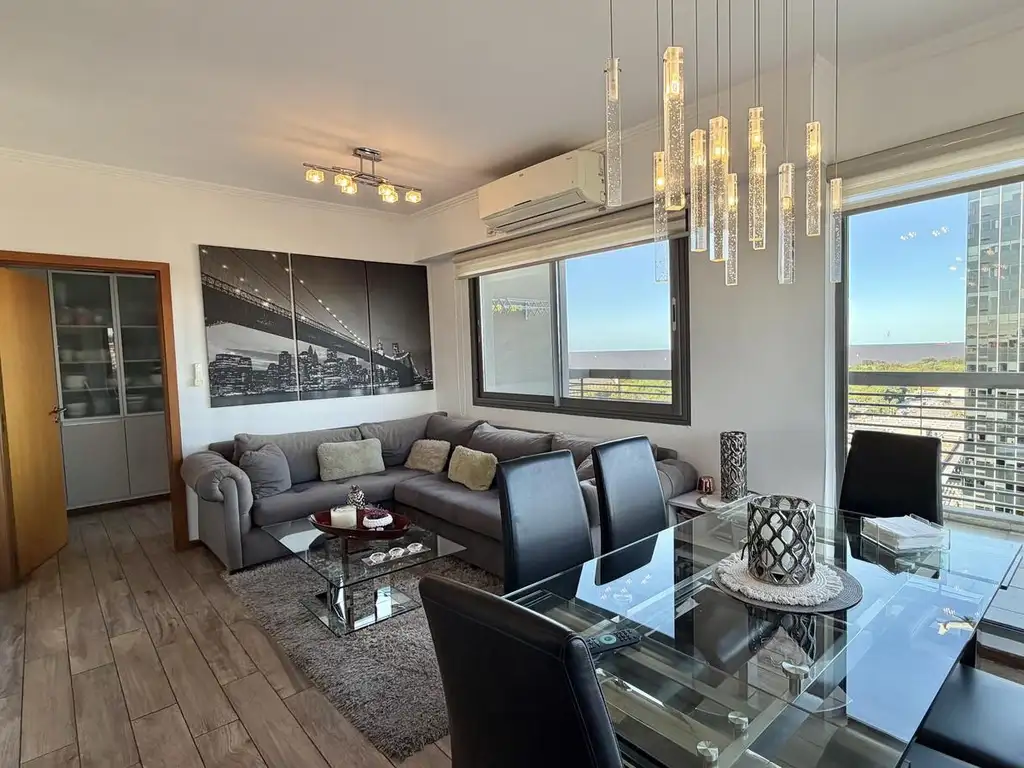 Amplio livingcomedor con salida a balcón aterrazado y vista al río