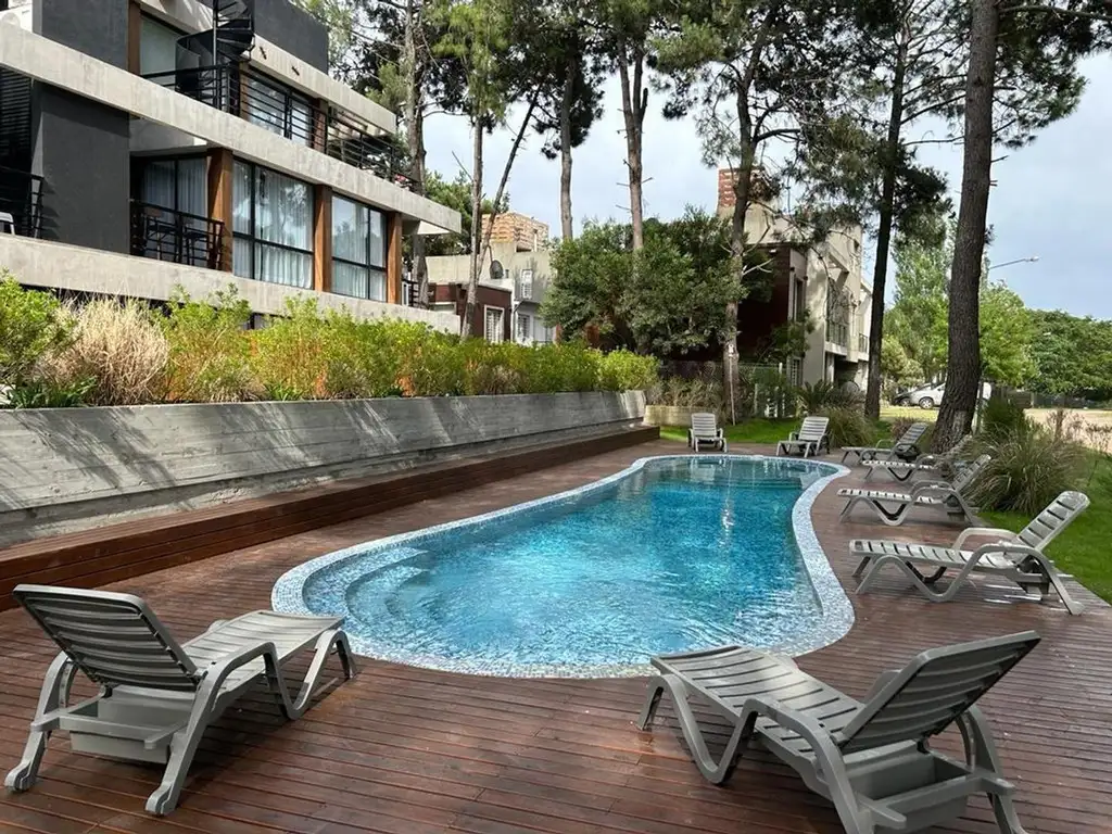 Uno de sus grandes diferenciales es el amplio patio privado de 45 m², con vista abierta al bosque, parrilla propia y lavarropas, ideal para disfrutar del aire libre con privacidad total.