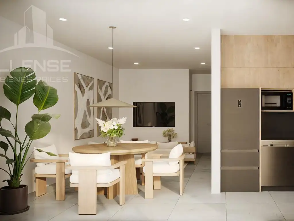 Cocina integrada, living - comedor.