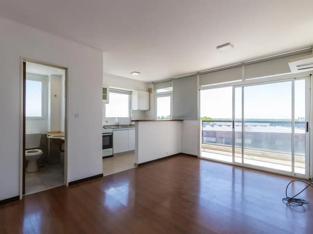 Ingresamos a un cómodo living/comedor, con cocina semi integrada con bajo mesada/alacenas y barra desayunadora, ambos con salida a un amplio balcón con vista al río.