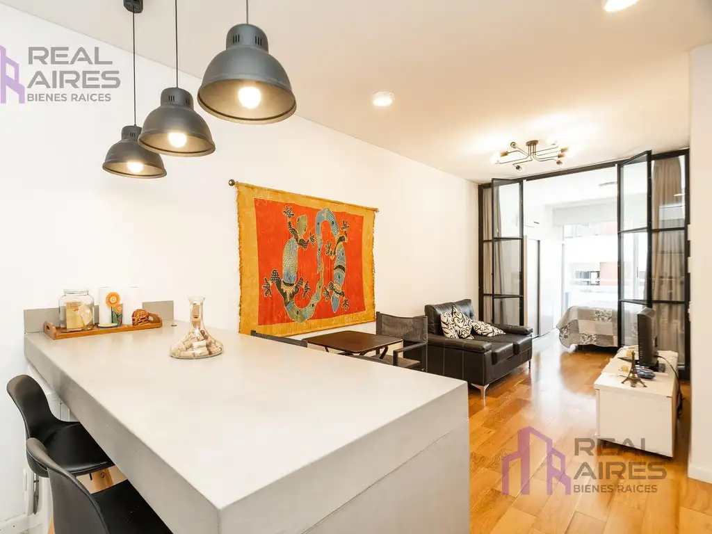 El dormitorio cuenta con salida directa al balcón, aportando aire, luz y una conexión fluida con el exterior. El baño completo acompaña con un diseño moderno y en excelente estado. Todo el departamento transmite orden, calidez y practicidad.