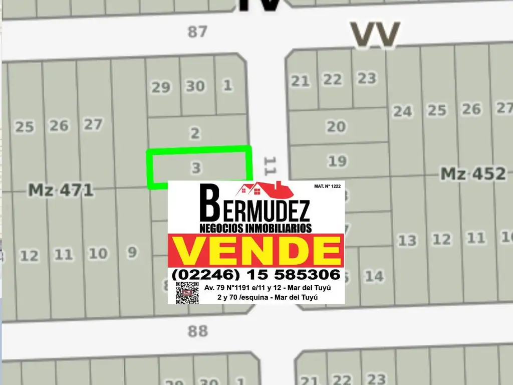 Venta Lote En Mar Del Tuyu Calle 11 Entre 87 Y 88