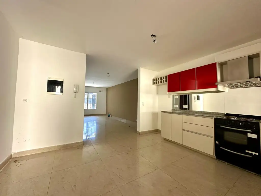 Super luminoso, con lindos detalles de terminación y buen gusto. Accedemos al inmueble por portón peatonal individual y sector a cochera descubierta, luego ingresamos al living comedor que da al frente y se comunica con la cocina con comedor diario que tiene muebles bajo y alto mesada y está abierta al living, toilette de recepción, patio con parrilla y lavadero.