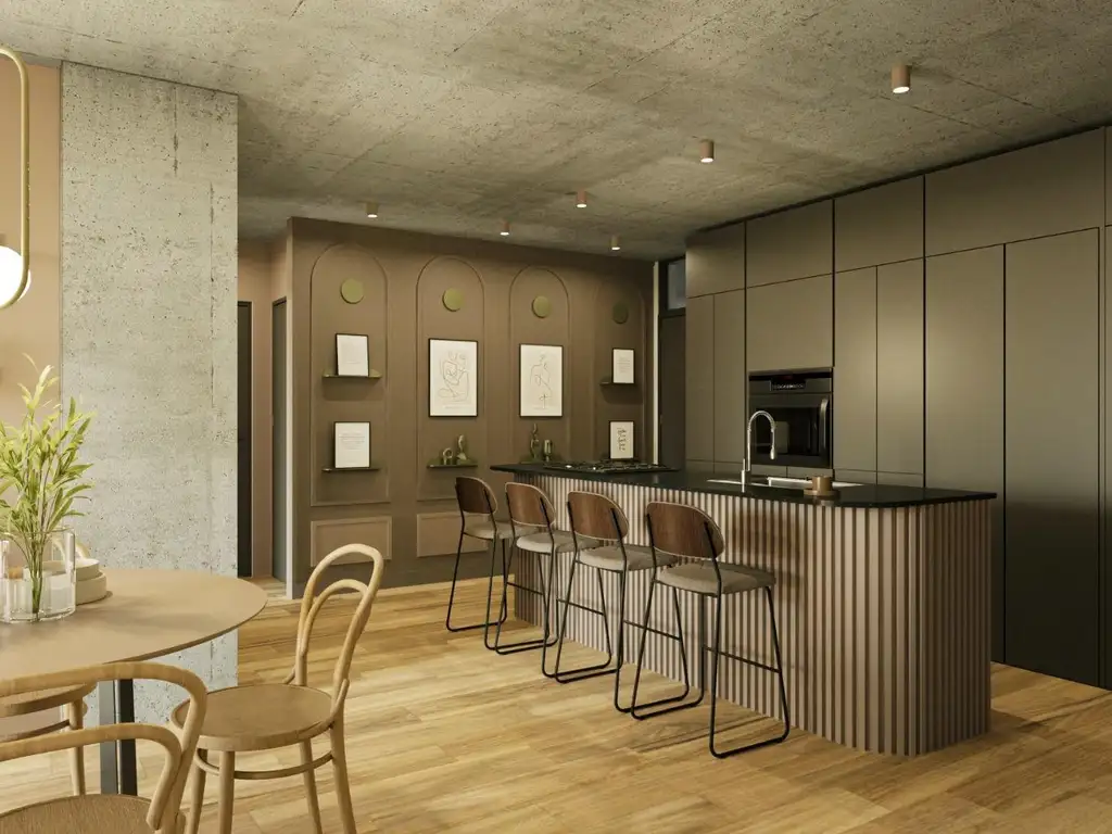Proyecto: Edificio de planta baja más 9 pisos con unidades de 1, 2 y 3 dormitorios, cocheras en 2 niveles mediante rampa móvil y local comercial en PB. Amenities en azotea con SUM, parrillero y pileta con solárium. Control de acceso y servicio de limpieza. Distribuidor en dos bloques con 2 ascensores independientes.