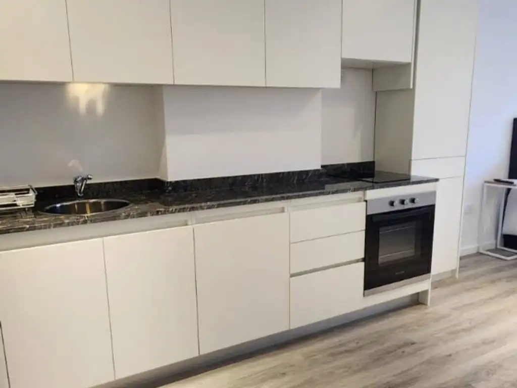 El ambiente principal cuenta con excelente entrada de luz natural. Cocina integrada con espacio de guardado, anafe y horno eléctrico. Baño completo.