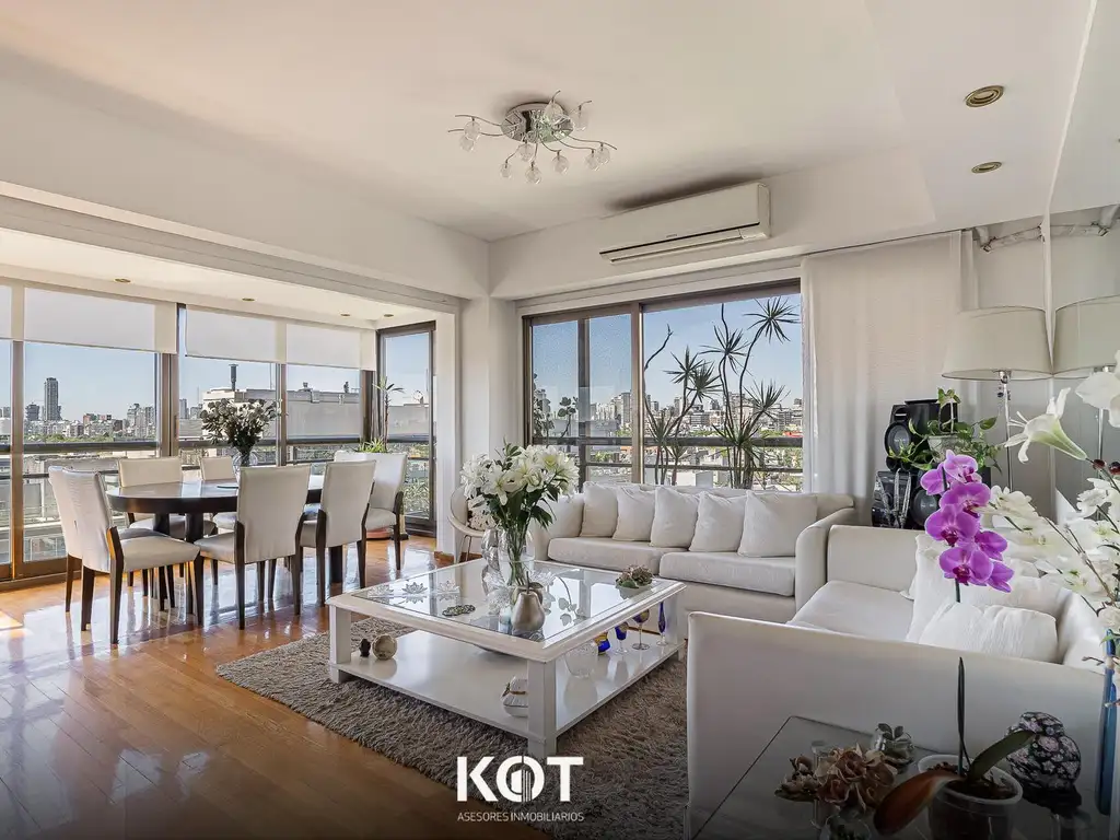 Gran Living comedor, muy luminoso, con balcon incorporado. Increible vista abierta y panorámica hacia Los Bosques de Palermo, el Rio, Aeroparque y la Ciudad!