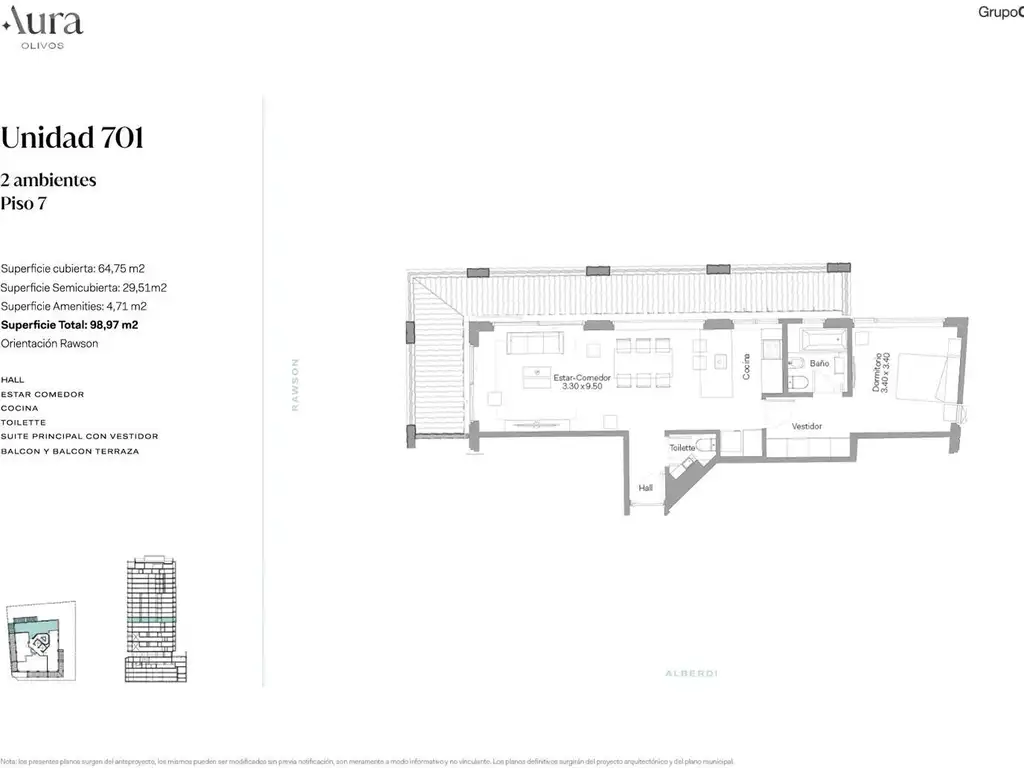 Todas las imágenes, planos, descripciones, y características indicadas son meramente referenciales e ilustrativas y podrán ser modificadas sin previo aviso. Las superficies indicadas son estimadas. Las superficies y medidas definitivas surgirán del plano de mensura final aprobado oportunamente por el GCBA. Las fechas de inicio de obra o posesión son estimadas, podrán ser reprogramadas por la Dirección de obra y dependerán a su vez de un proceso de aprobaciones municipales u otros organismos intervinientes. Los precios indicados podrán modificarse sin previo aviso. El interesado deberá realizar las verificaciones respectivas previamente a la realización de cualquier operación, requiriendo por sí o sus profesionales las copias necesarias de la documentación que corresponda.
