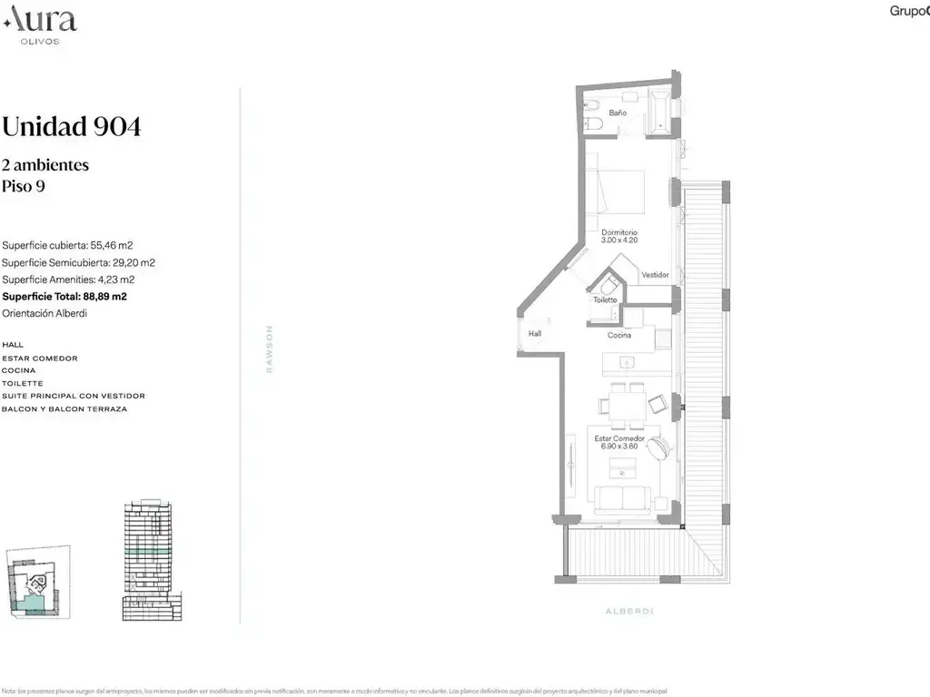 Todas las imágenes, planos, descripciones, y características indicadas son meramente referenciales e ilustrativas y podrán ser modificadas sin previo aviso. Las superficies indicadas son estimadas. Las superficies y medidas definitivas surgirán del plano de mensura final aprobado oportunamente por el GCBA. Las fechas de inicio de obra o posesión son estimadas, podrán ser reprogramadas por la Dirección de obra y dependerán a su vez de un proceso de aprobaciones municipales u otros organismos intervinientes. Los precios indicados podrán modificarse sin previo aviso. El interesado deberá realizar las verificaciones respectivas previamente a la realización de cualquier operación, requiriendo por sí o sus profesionales las copias necesarias de la documentación que corresponda.