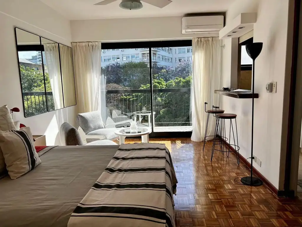 Departamento con vista abierta verde muy luminoso tipo estudio en alquiler temporario.